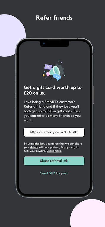 Whether you're checking data usage, renewing your plan, or grabbing add-ons, everything is optimized for ease. The app also includes easy referral tools so you can share SMARTY with friends and earn rewards. Ideal for anyone searching for convenient mobile plan control, real-time usage monitoring, or hassle-free SIM management.