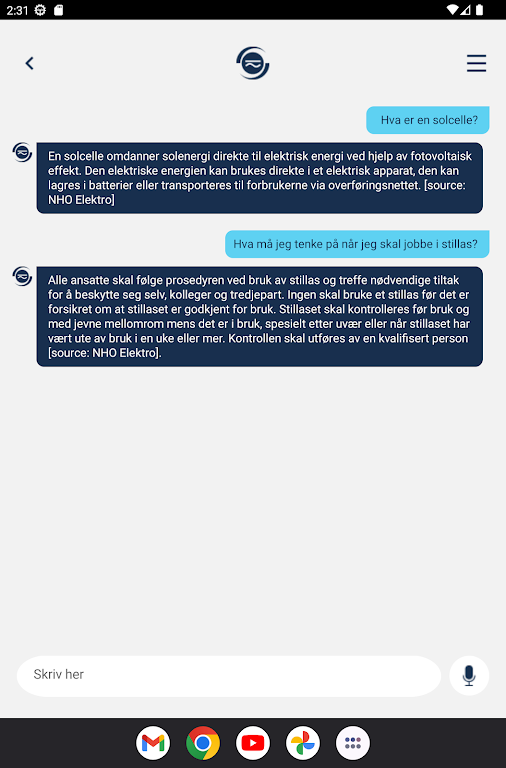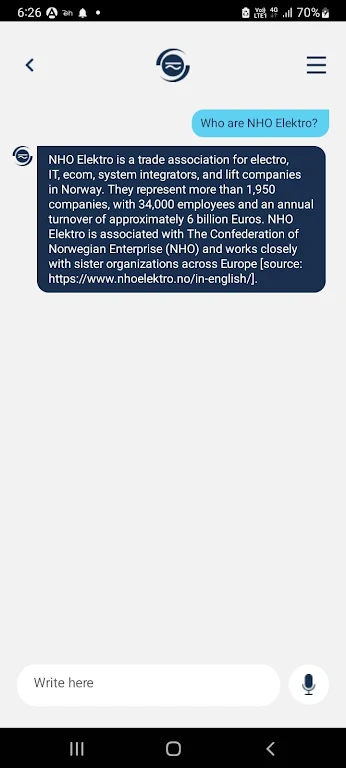 EL Chat is an intuitive app designed for NHO Elektro members, providing quick access to a vast knowledge base and delivering helpful, relevant information. With seamless integration for Wear OS devices, EL Chat ensures that you stay connected, informed, and in control, all with just a simple voice command.