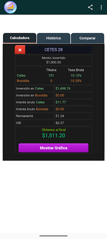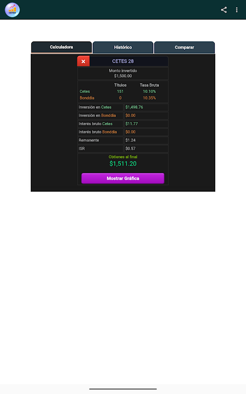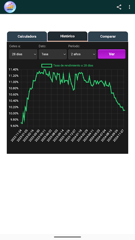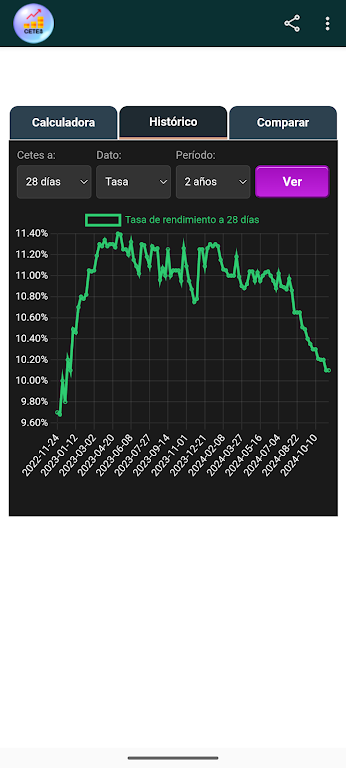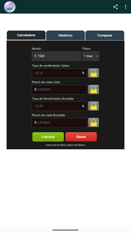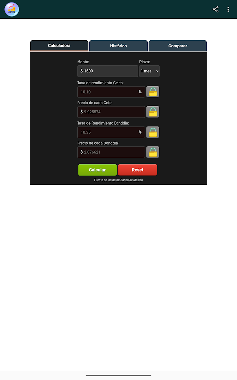 The CETES Calculator is a fast, intuitive financial tool for anyone looking to invest wisely in Treasury Certificates (CETES). With real-time data from Banco de México, it helps you estimate returns, analyze risk, and plan strategies with confidence. It’s ideal for investors seeking reliable yield projections, historical trends, and clear comparison charts.