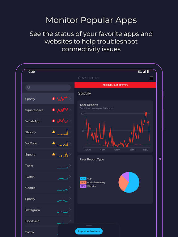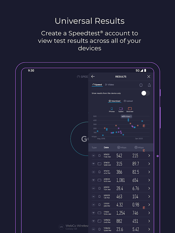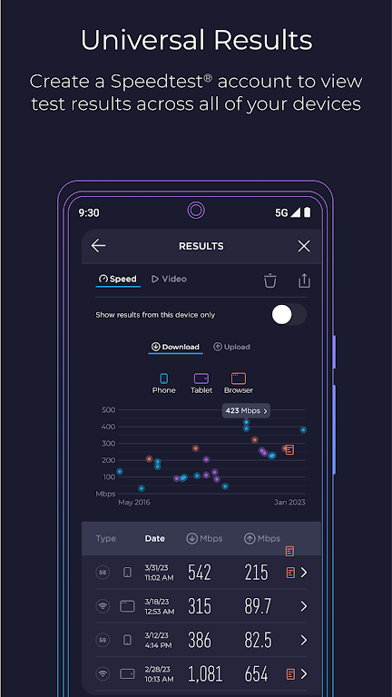 Explore real-time data with mobile network coverage maps that show network availability at street level, and gain deeper insights with visual graphs of your connection's consistency. Speedtest is your go-to tool for troubleshooting connection issues, verifying promised speeds, and optimizing your mobile and broadband experience. Ideal for both casual users and professionals, Speedtest makes it easy to track your internet performance over time with detailed reporting and simple sharing options.