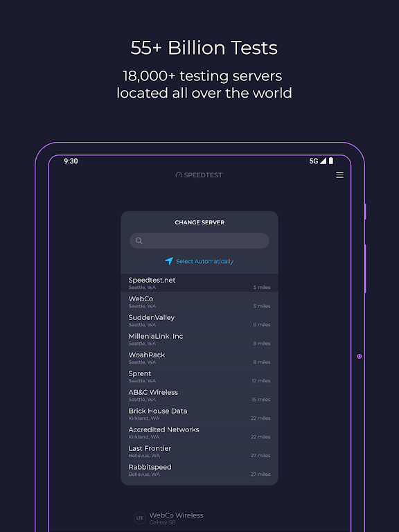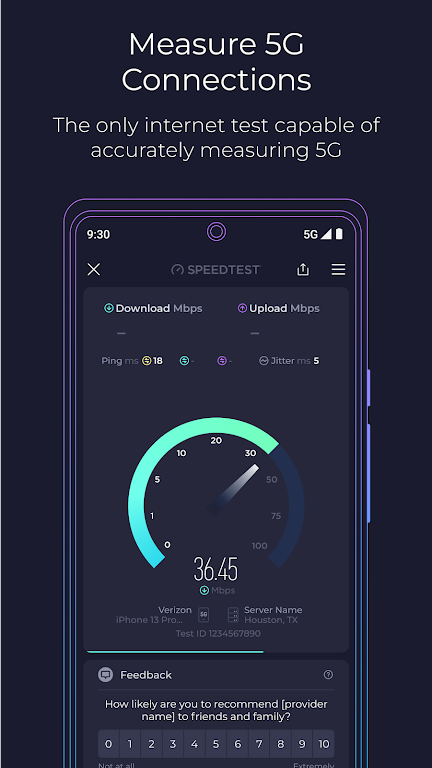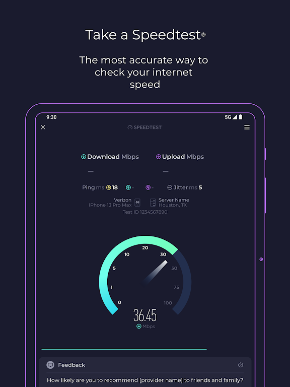 Speedtest® by Ookla® lets you test your internet speed and performance in just one tap. Trusted by millions worldwide, this app offers accurate results anywhere, powered by a massive global server network. Whether you're checking your mobile or Wi-Fi speed, Speedtest delivers precise measurements for download, upload, and ping speeds, even for 5G networks.