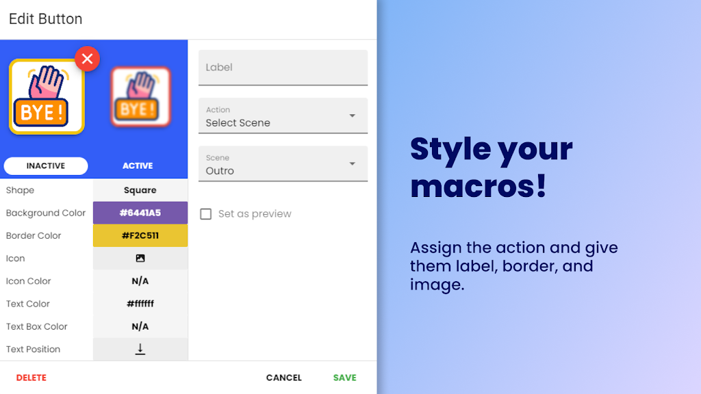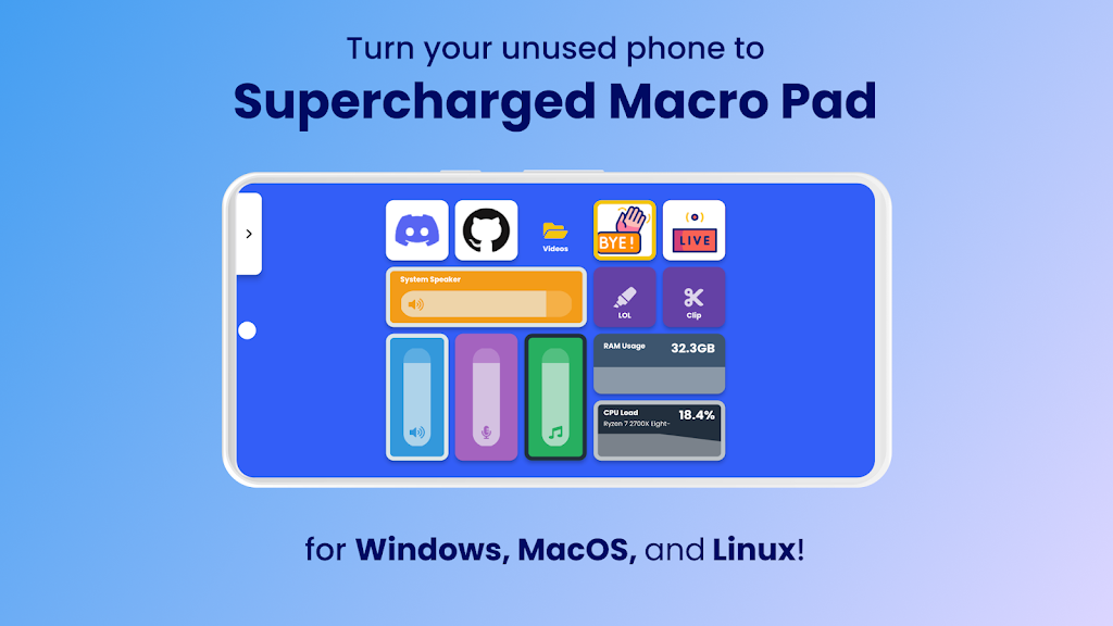 Connect your device to your computer over local Wi-Fi by entering your IP address or scanning a QR code. Personalize every macro button with images, text, or animated GIFs for a dashboard that matches your style.