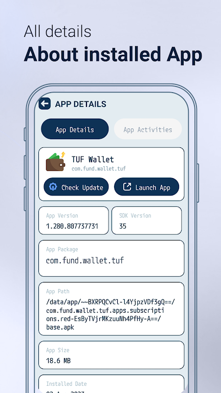 Gain access to complete app information, including detailed version data, permissions, API levels, and install history. Use the privacy scanner to quickly detect apps that may compromise your data, and manage startup apps to improve battery life and device performance. With the ability to backup and restore APKs, you can safeguard your favorite apps or easily share them with friends. Best of all, everything is done locally on your device to protect your privacy.