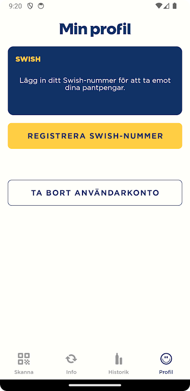 The Pantamera app lets you quickly transfer your recycling deposit money to your bank account via Swish when you use supported deposit machines. Log in safely and effortlessly with mobile BankID for a seamless experience.