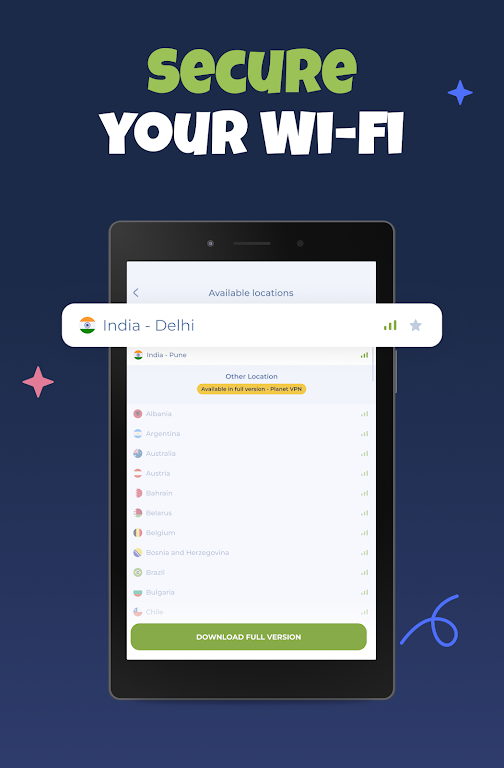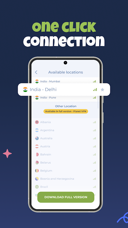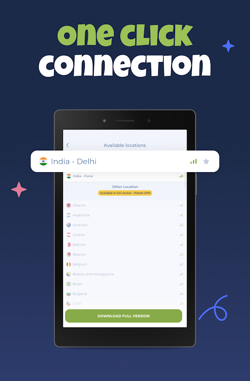 Experience seamless, secure, and unrestricted internet browsing across India with Planet VPN Lite. Our free VPN India app offers easy and fast access to local content, without compromising your privacy. With 4 strategically located VPN servers across the country (and more on the way), enjoy unlimited internet speed, enhanced security, and total freedom online.