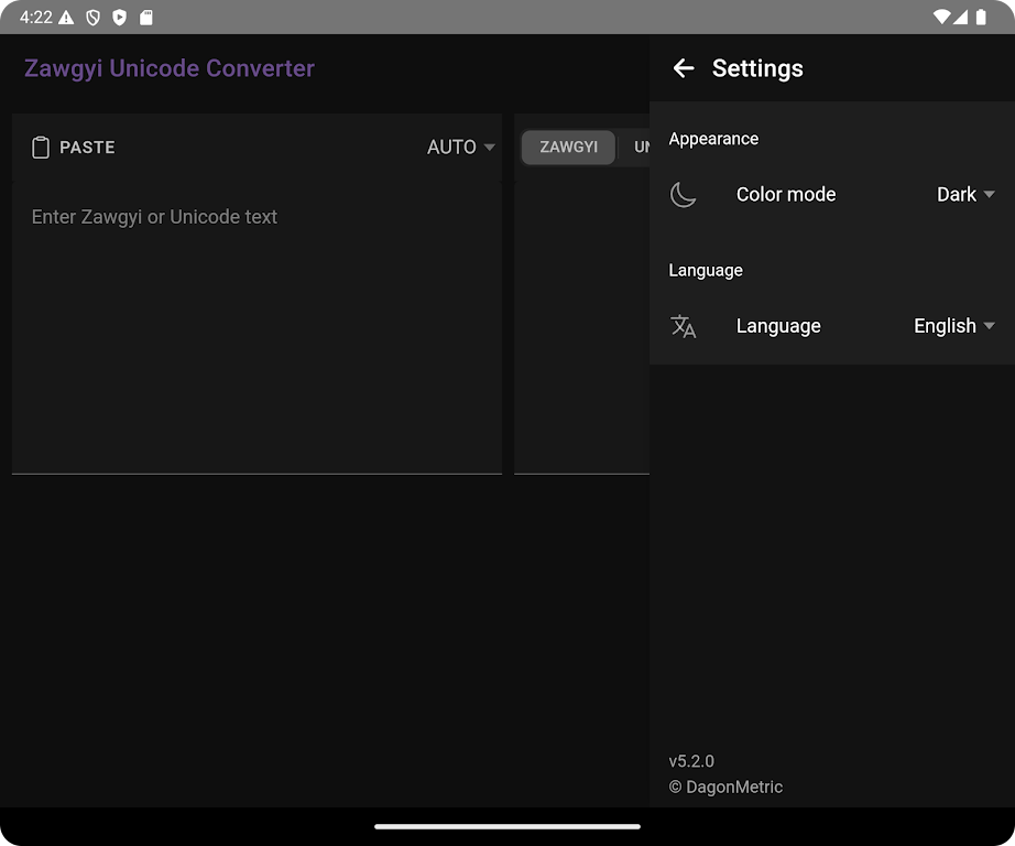 Transform your text seamlessly with the Zawgyi Unicode Converter, a fast and reliable app for converting between Zawgyi-One and Myanmar Unicode fonts. Whether you're working offline or online, this app makes it easy to switch between the two font encodings for perfect Myanmar text compatibility. Designed for accuracy, this converter ensures smooth and error-free conversion every time.