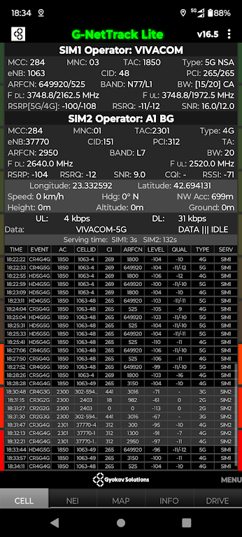 G-NetTrack is a powerful netmonitor and drive-test tool for 5G/4G/3G/2G (NR/LTE/UMTS/GSM/CDMA/EVDO) networks. It gives you real-time serving and neighbor cell data without specialized equipment, ideal for telecom engineers, field testers, and wireless hobbyists seeking deeper insight. Designed for clarity and performance, it also appeals to users exploring practical telecom diagnostics, signal analytics, and mobile network optimization.