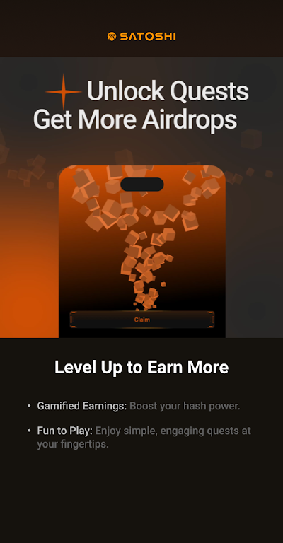 With an intuitive interface and seamless user experience, claiming your airdrop rewards has never been easier. You can earn hourly rewards, complete engaging quests, and boost your hash power for even bigger payouts. Want to maximize your earnings? Team up with friends and mine together to amplify your rewards. Download Satoshi App now and start exploring the world of crypto today!
