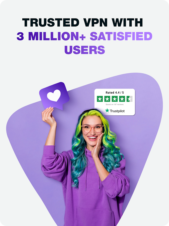 Protect your online privacy and access content securely with PureVPN, a blazing-fast VPN for Android. Rated 4.7/5 by over 11,000 satisfied users on Trustpilot, PureVPN provides top-tier encryption, unbeatable speeds, and seamless access to global content. With just a few taps, you can enjoy private and secure internet browsing on all your devices. Start your 7-day free trial today!