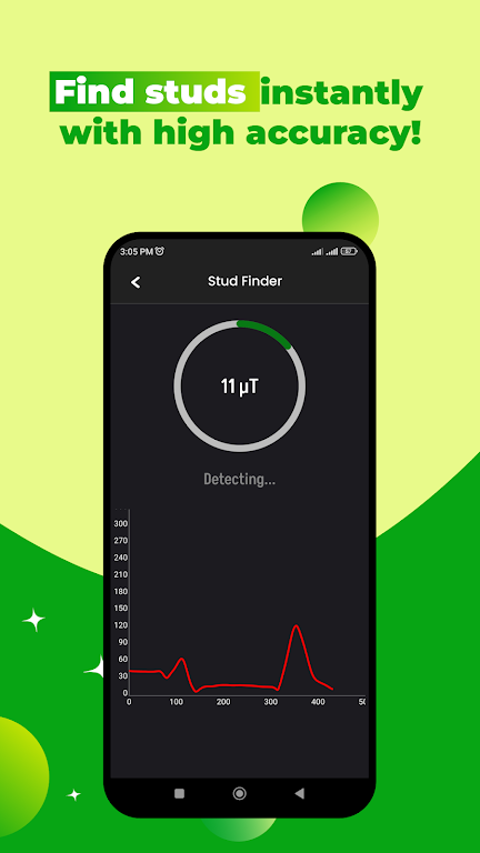 Utilizing your smartphone's built-in magnetic sensor (magnetometer), the Stud Finder app detects changes in the wall’s density caused by studs, metal objects, or wires. Simply move your phone slowly across the surface, and the app will notify you when it finds something. No more unreliable stud finders or guesswork—just precise, real-time results every time you scan.