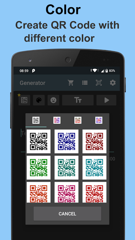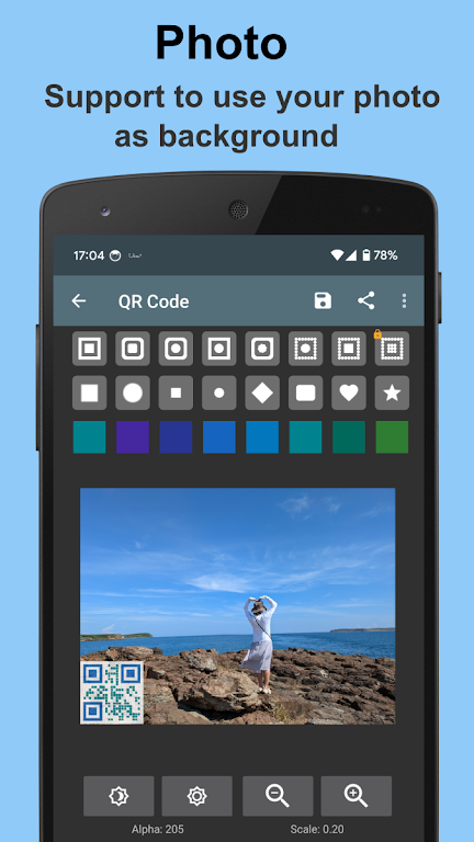 v1.0.8: Now supports using photos or pictures as backgrounds for QR codes.