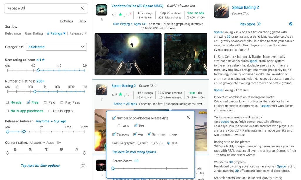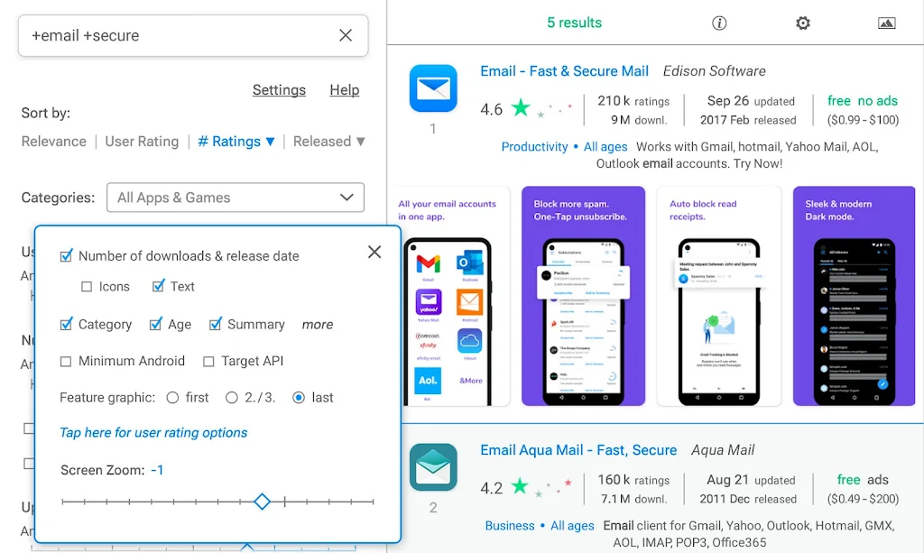 Designed for clarity and control, you get advanced operators, multi-level filters, scalable screenshots, and world-average ratings—all shown directly in the result list. Ideal for power users seeking “find apps by feature not name,” developers researching markets, and anyone who wants a best Android app finder tool with deep, reliable data.