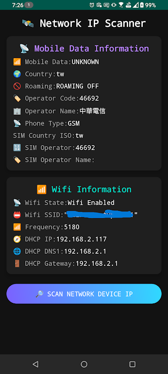 Effortlessly scan devices connected to your Wi-Fi network with Network IP Scanner. This fast, simple app provides detailed mobile network and Wi-Fi information in a user-friendly interface, making it ideal for both beginners and tech-savvy users.