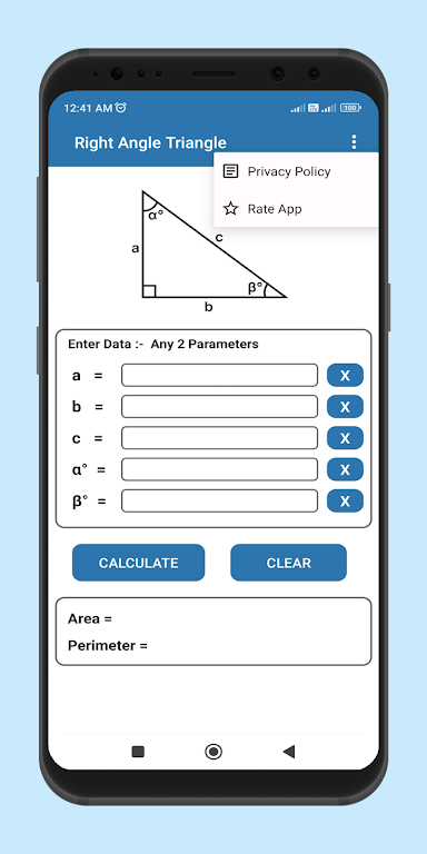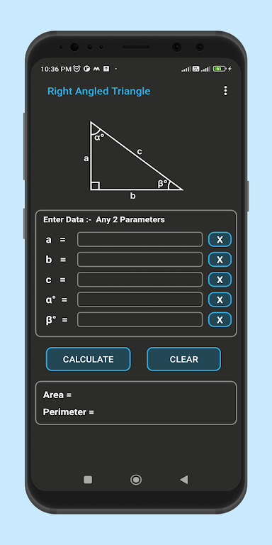 Get quick and precise right-angled triangle calculations anytime—no internet required. This tool helps you compute sides, angles, area, and perimeter with ease, making it perfect for students, engineers, and anyone needing reliable geometry results.