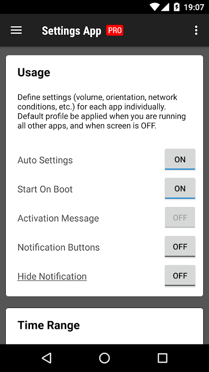 Create a unique profile for every app with controls for volume, orientation, network conditions, Bluetooth connection, screen brightness, and keep-screen-awake behavior. When you launch an app, its assigned profile loads automatically, giving you a seamless, per-app configuration tool that applies settings right at START while allowing you to adjust them freely afterward.