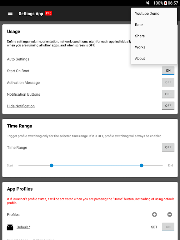 Don’t forget to set up a default profile. It applies whenever you use any app without a custom profile or when your screen is off, keeping your device consistent and streamlined. *Please do not use it alongside other profile tools to avoid conflict.