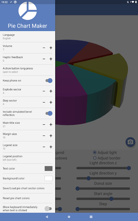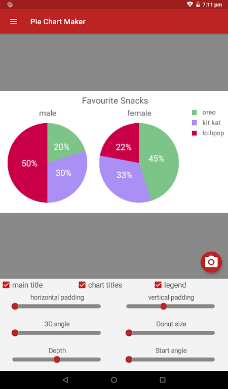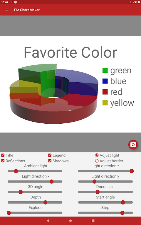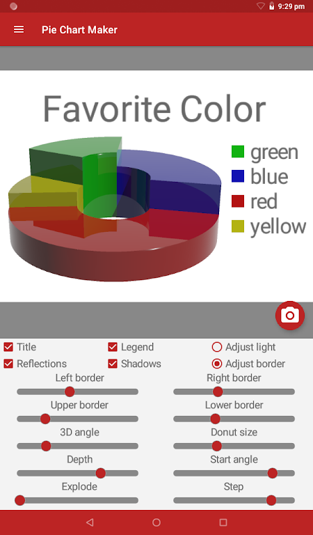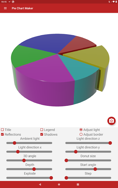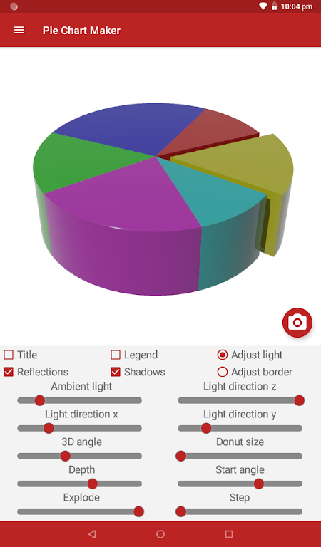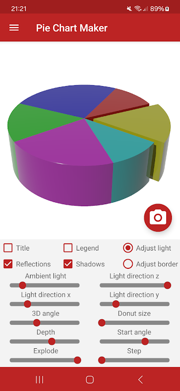 Whether you need simple 2D graphics or a ray-traced true 3D pie chart, this professional pie chart maker gives you full creative control. Save charts to your gallery, manage up to 10 visuals per sheet, and enjoy flexible editing tools designed for fast, polished results.
