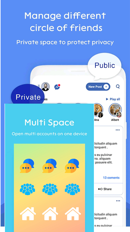 Multi Space is the perfect app for users who want to keep their personal and professional life separate. Log into multiple accounts of the same app and keep them online without any hassle. From gaming to social networking, switch accounts smoothly and keep them active in parallel. The app is designed to enhance your user experience, providing easy account management with minimal resource usage.