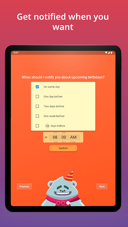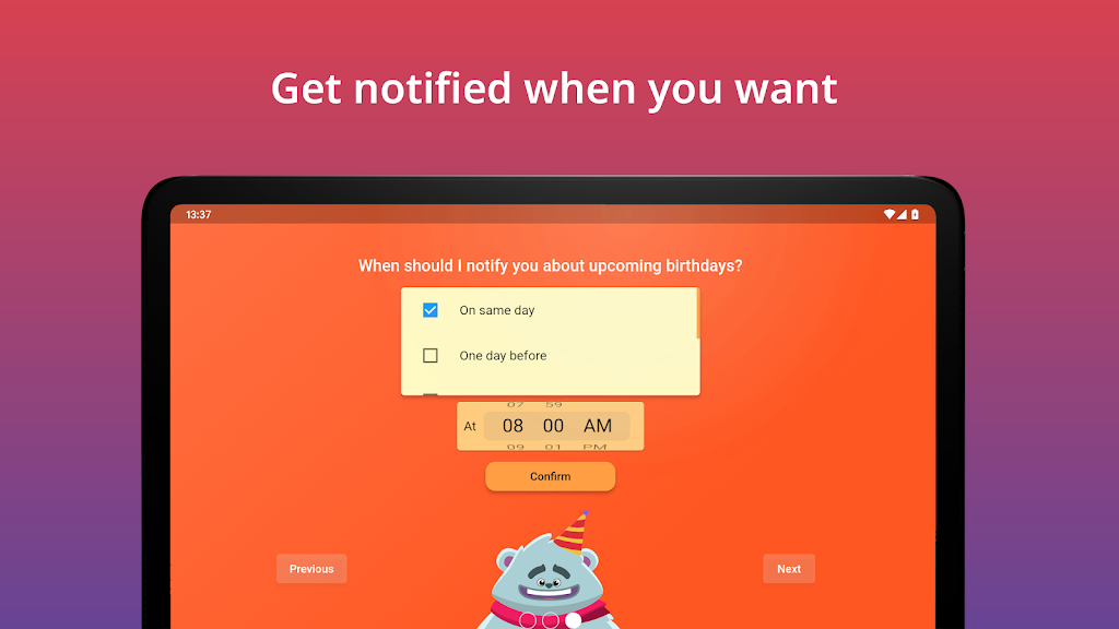 With fast setup, a home-screen widget, and full calendar syncing, this app helps you stay ahead of upcoming birthdays effortlessly. It’s also optimized for high-accuracy notifications and easy cross-device management—ideal for users searching for “best birthday reminder app,” “family calendar organizer,” or “contact birthday tracker.”