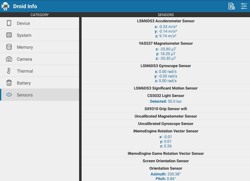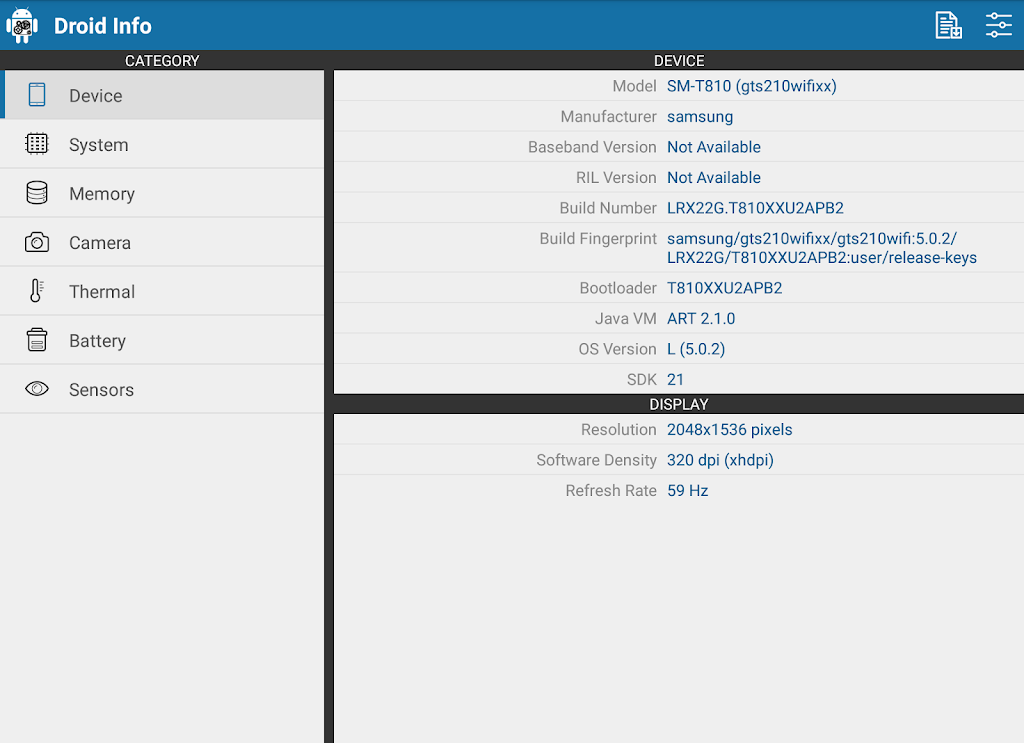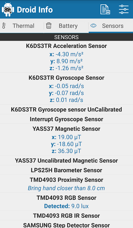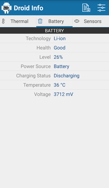 Key Features:Droid Info is the ultimate tool to explore every aspect of your device’s performance and keep track of its health and features. Try it today to gain full insights into your smartphone's hardware!