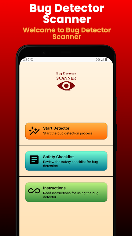 Bug Detector Scanner offers a clean, simple user interface for fast and effective detection—an essential tool for anyone who values privacy and wants quick hidden camera detection, hotel room safety checks, and personal security scanning.
