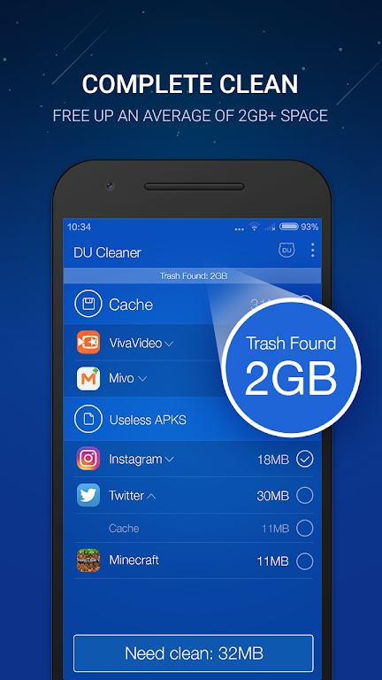 • Clean Up & Junk File Cleaning — Targets cache and residual files with high accuracy to reclaim storage and improve device and SD card performance.