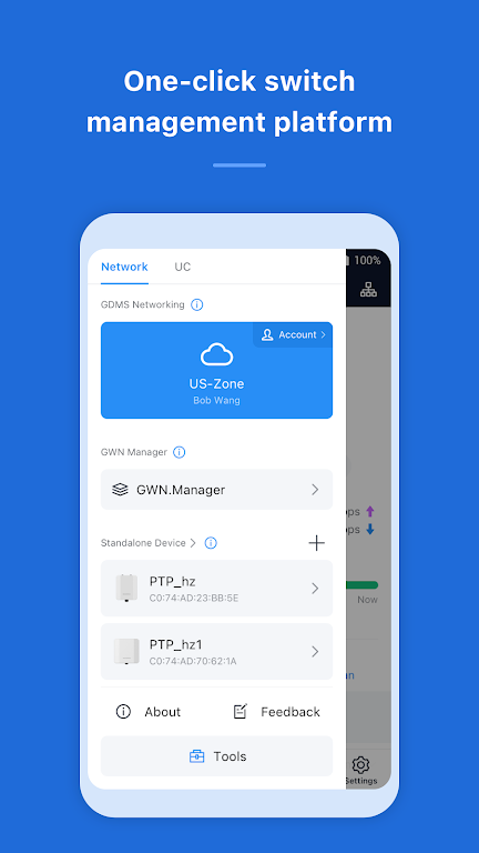 Stay connected and in control of your network, no matter where you are, with the GWN app. This free, easy-to-use app allows you to monitor and manage devices registered in GWN.Cloud or GWN Manager directly from your smartphone. Whether you’re on the go or at home, the GWN app brings powerful network management features to your fingertips.