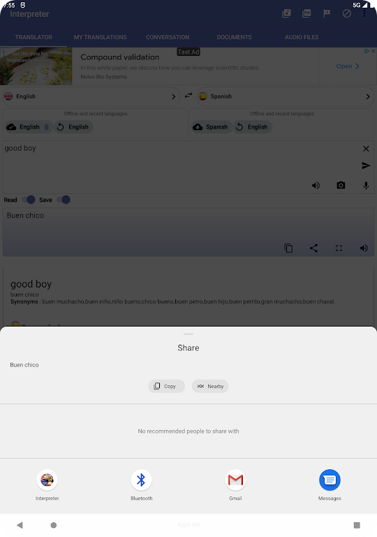 Enjoy advanced features like offline text recognition, conversation mode, and translation history. Plus, easily share your translations with friends through social media, email, or other apps. The Interpreter Translator app also allows you to save translated content as PDFs or export audio files for later use.