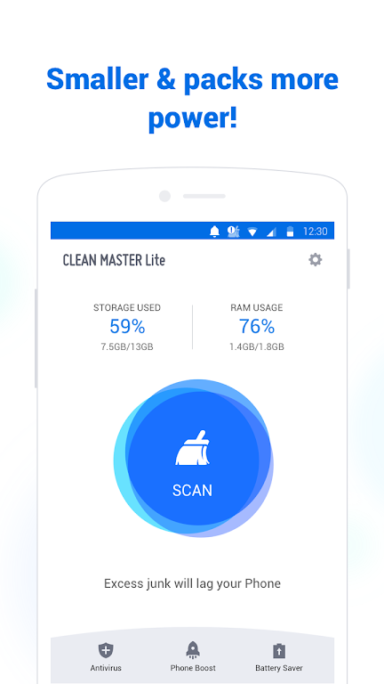Powered by an effective cleaning engine and a top-rated antivirus, Clean Master Lite helps you reclaim space, speed up your device, and extend battery life. It’s an ideal phone storage cleaner app for anyone who wants to speed up a slow Android phone or improve daily performance effortlessly.