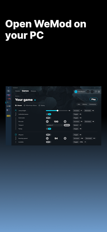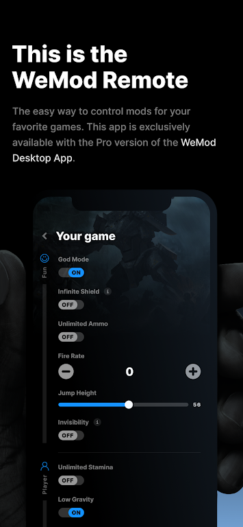 Connect WeMod Remote to your WeMod desktop app and start customizing your gameplay today.