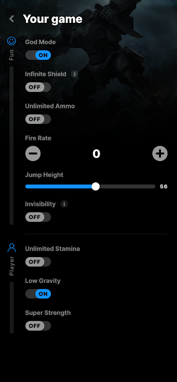 Use intuitive sliders, buttons, and combo-boxes to adjust cheats and gameplay tweaks in real time. Whether you’re optimizing difficulty, managing large mod lists, or exploring massive open-world anime gacha adventures, WeMod Remote keeps everything accessible from your phone.