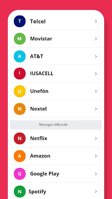 With the Multi APP, you can easily buy electronic refills for all major Mexican carriers (Telcel, AT&T, Movistar, and more), recharge over 400 services (CFE, Sky, Telmex, and more), and purchase the most popular gift cards worldwide (Netflix, Amazon, Uber, Spotify, Google Play, PlayStation, and many others) – all from your phone, anytime, anywhere.
