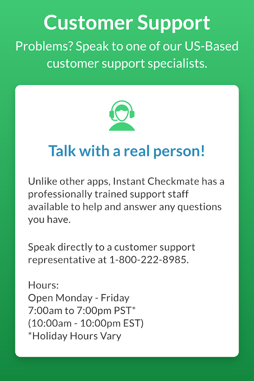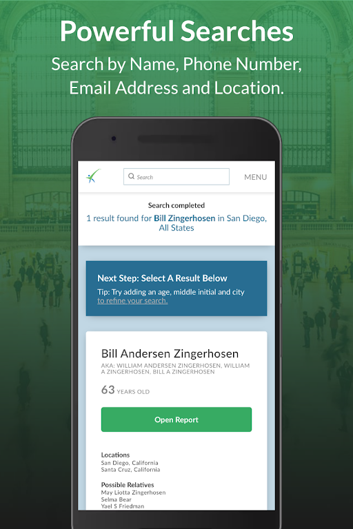 Instant Checkmate’s background check app makes it easy to find detailed public records with a simple name, phone number, or email search. Whether you’re checking up on a potential online seller, researching someone you just met, or looking for long-lost friends, our app delivers fast, reliable results without alerting the person you’re searching.