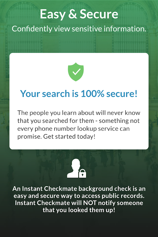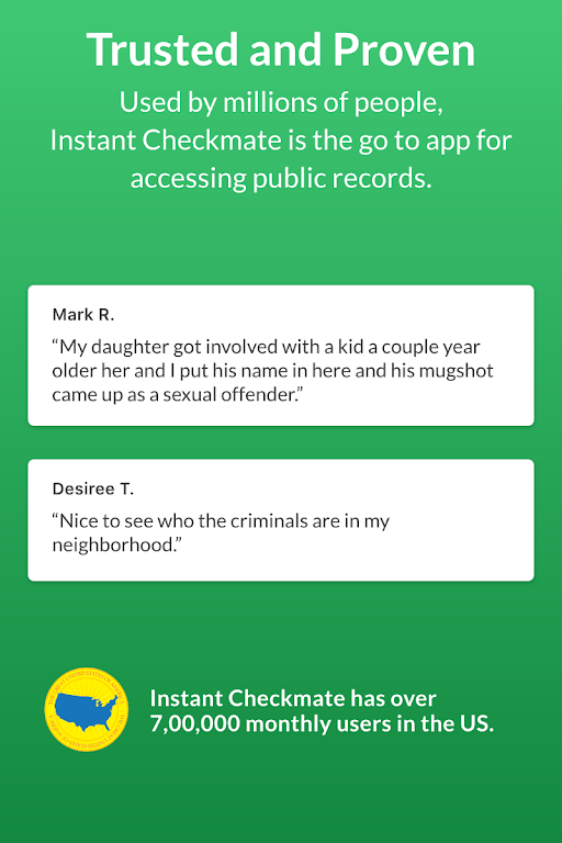 With Instant Checkmate, you can access criminal records, arrest histories, contact details, financial information, and much more. Perfect for vetting people you meet online or verifying information, our app helps you make safer, more informed decisions on-the-go. Find out what’s available about almost anyone — and even look up yourself to see what’s out there.