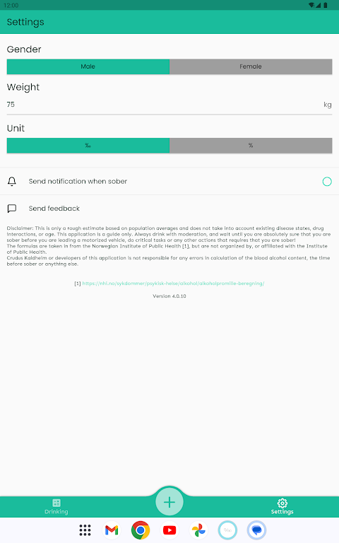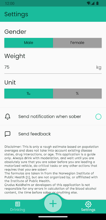 Important Note: While this app is a helpful tool for tracking BAC, it should not be used as the sole determinant of whether you're fit to drive or engage in activities that require full focus. Always use your personal judgment and prioritize safety. Never drive or perform critical tasks unless you are certain that you are completely sober.
