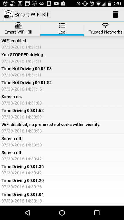 Tired of your device losing connection while switching between WiFi networks or from WiFi to mobile data? Unlike 4G/LTE, WiFi doesn't implement Mobile IP, which means your device may struggle to maintain sessions when moving between hotspots. With this app, you can disable WiFi while driving, ensuring your phone doesn’t waste battery or try to connect to networks that aren't helpful. No more interruptions when you're on the go.