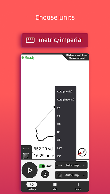 Effortlessly measure distance and area for land surveying in agriculture, construction, real estate, and property management with this easy-to-use app. Whether you're walking or driving, the app provides precise measurements of the region's area and path length. Perfect for professionals and hobbyists alike, it’s designed for quick, accurate results on-the-go.