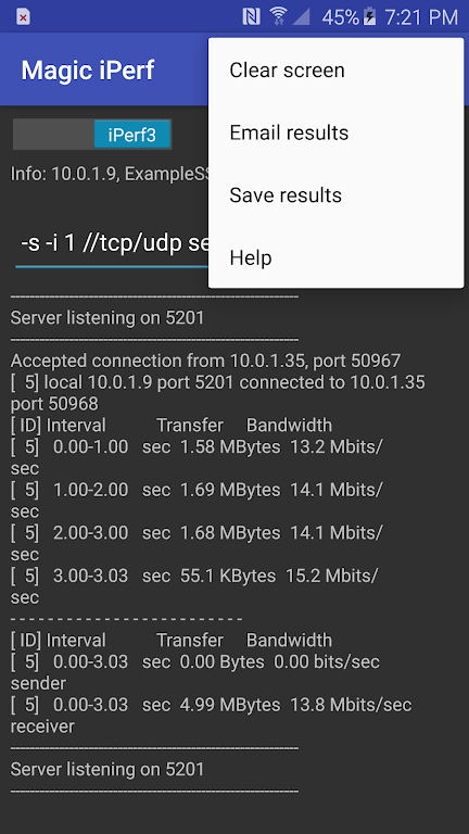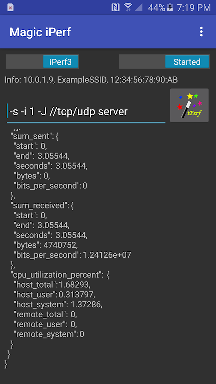 Originally developed for a personal project, Magic iPerf saves users valuable time by automating the process of running various iPerf and iPerf3 commands with different configurations. After seeing its potential, the app was polished and made available to benefit others in similar situations. If you encounter any issues on your device, please send a bug report with your device and Android model details. The app is currently tested on Nexus phones, and your feedback is highly appreciated. Special thanks to the iPerf and iPerf3 communities for their excellent tools.