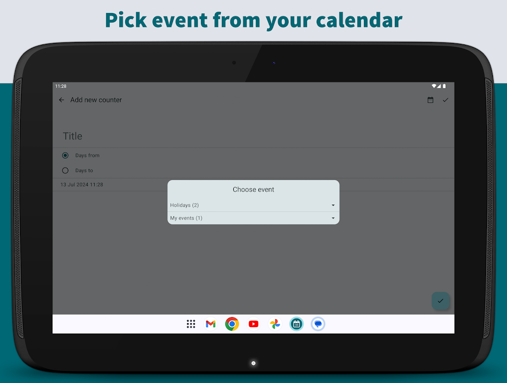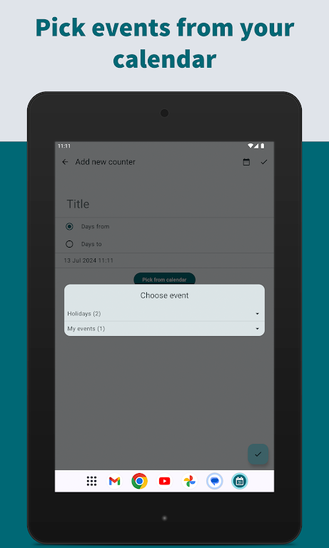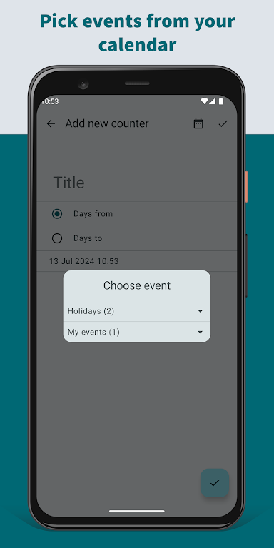 Set up your counters in seconds, sync events directly from your calendar, and stay on track with timely notifications. Perfect for planning trips, tracking habits, or remembering anniversaries—ideal for anyone searching for a “days counter app,” “countdown widget for home screen,” or “event reminder timer.”