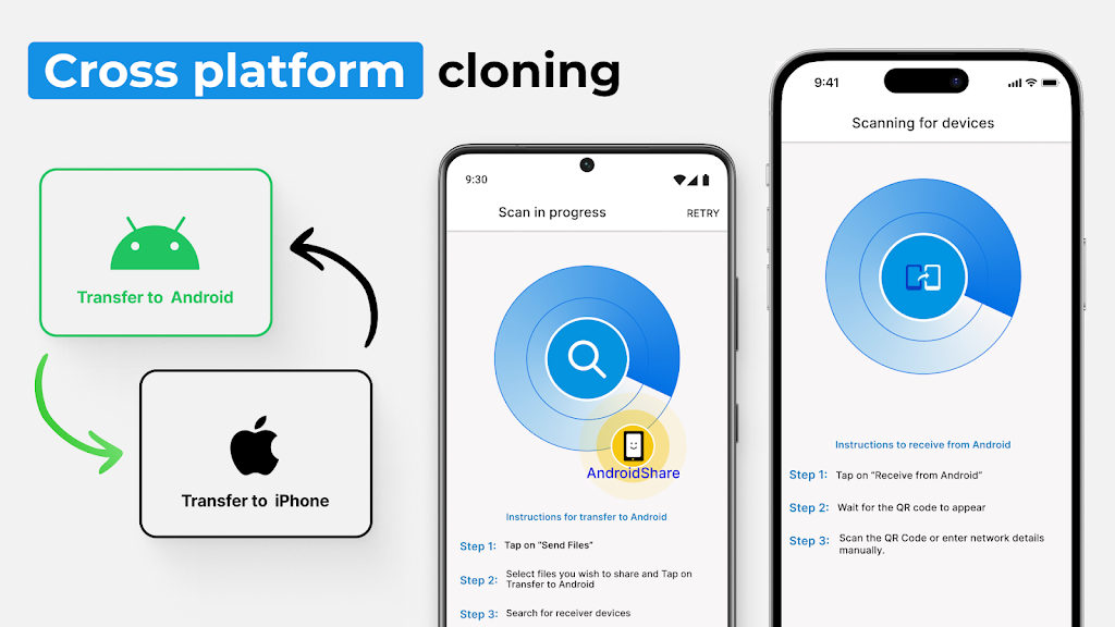 Clone Phone: Phone Switch is your all-in-one companion for seamless mobile cloning, wireless phone transfer, and stress-free device switching. Designed for users who want to Transfer Data Easily, this powerful utility ensures smooth movement between phones—perfect when upgrading or switching platforms. Optimized for stability and speed, it delivers a hassle-free experience similar to top “phone transfer app for Android to iPhone” and “fast mobile data transfer tool” solutions.