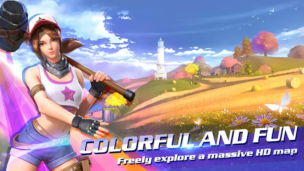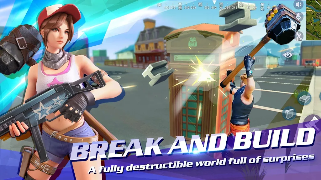 Experience fully destructible environments where almost everything can be smashed, harvested, and reused. Break through vehicles, trees, and buildings to collect materials, then instantly build bridges, ladders, towers, or fortresses to overcome obstacles and gain the tactical edge in this sandbox battle royale adventure.
