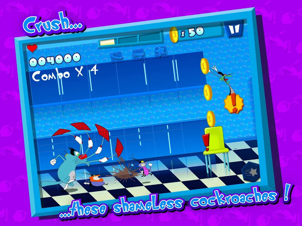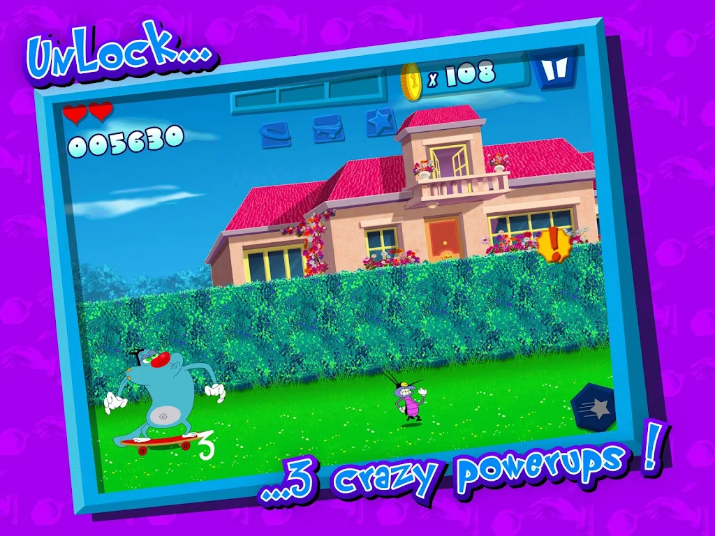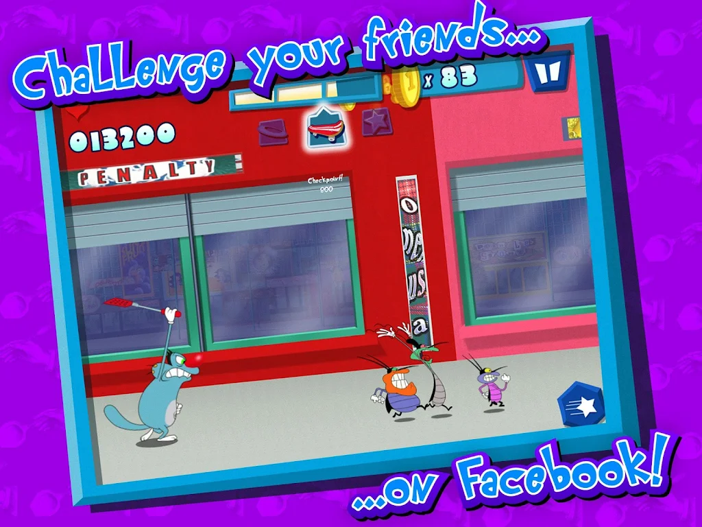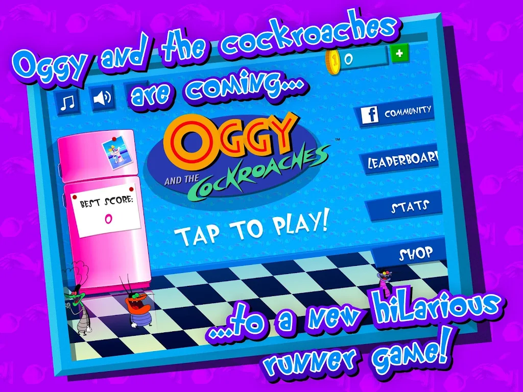Join Oggy on his quest to save his fridge from the mischievous roaches in this fast-paced, endless runner. Race through three unique worlds, dodge wild obstacles, and use your trusty swatter to squash those troublesome cockroaches. Collect coins to power up Oggy's skills and unlock special superpowers as you go. Challenge your friends on Facebook and see who can achieve the highest score in this fun-filled, action-packed adventure!