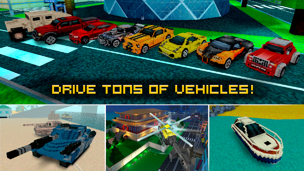 Block City Wars combines the best of both worlds with open-world gameplay inspired by Minecraft and the chaotic action of Grand Theft Auto V. Whether you’re exploring the city solo or battling online, there’s always something exciting to do.