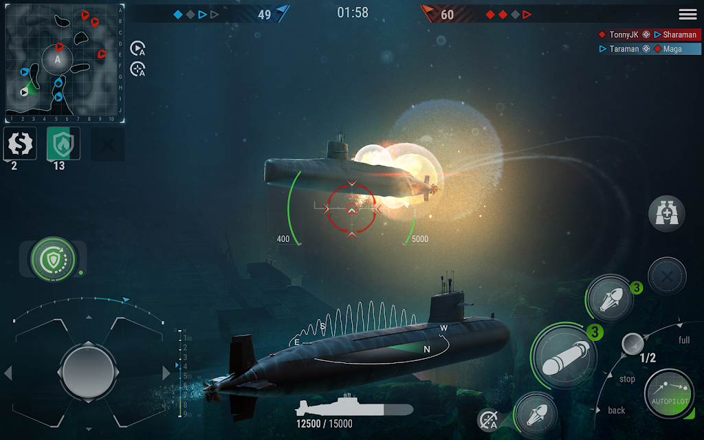 Intuitive Controls: Master the deep-sea combat with easy-to-learn controls, auto-pilot, and auto-firing options, but only your skills will make you a true champion!