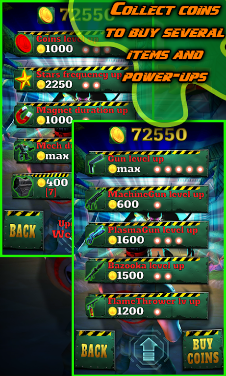 As the unstoppable arsenal man, Zambo’s arsenal includes bombs, pistols, machine guns, plasma guns, flamethrowers, and a bazooka—perfect for annihilating alien invaders. But it doesn't stop there! Zambo can also take control of his powerful robot, “The Pulper,” turning him into an indestructible force on the battlefield. Engage in high-intensity combat as you fight to destroy alien spacecrafts and eliminate the terrifying creatures that threaten the planet!