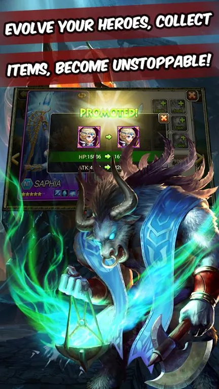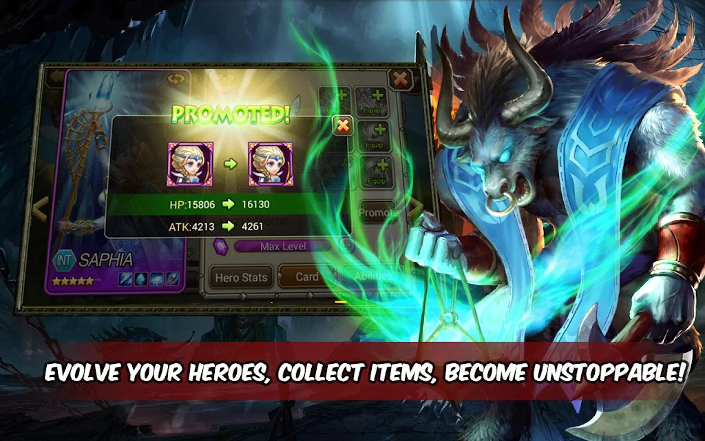 Collect hundreds of weapons, armour, and magical items, then evolve your Heroes to unlock devastating skills. With over 120,000 possible team combinations and millions of players worldwide, every battle is a new challenge in this idle RPG strategy game with PvP arena battles.