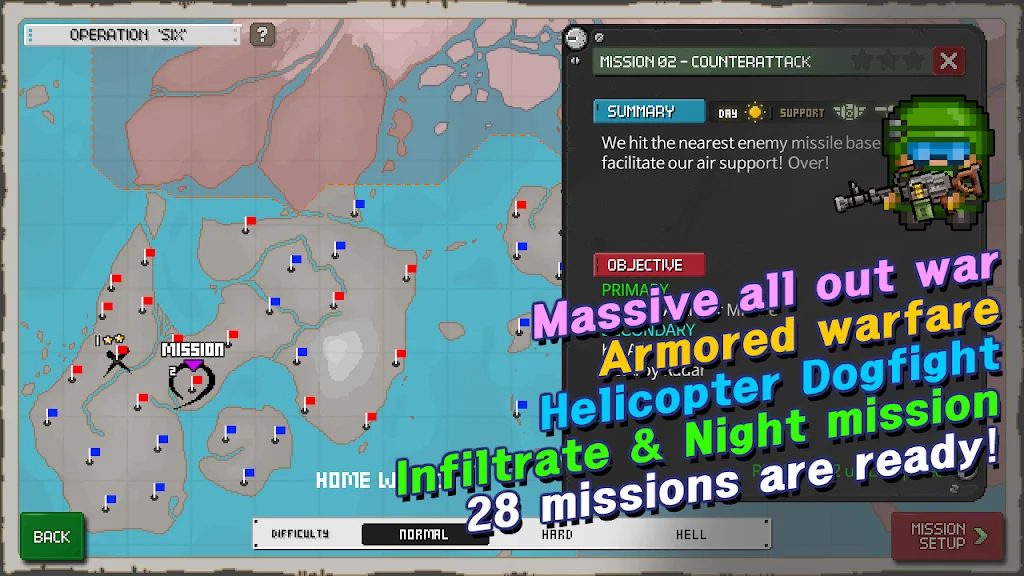 • Six playable classes: Rifleman, Rocketman, Sniper, Medic, Specialist, and Sapper, each with unique roles and skills • Large-scale warfare including infantry combat, armored tanks, helicopters, and jeep-based missions • Tactical gameplay with reconnaissance, close air support, stealth ghost mode, and mine detection • 28 missions featuring squad-based combat, vehicle control, and strategic objectives • Base upgrades, soldier progression, and deep weapon customization for a realistic top-down tactical shooterGame Size: 118 MBGame Version: 1.2.20