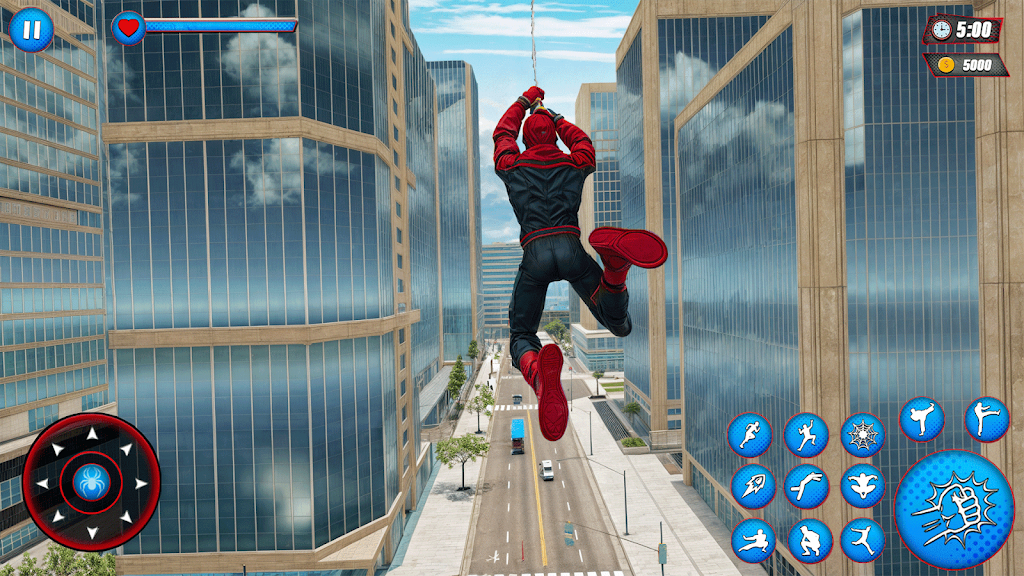 Enjoy the thrill of being a flying rope superhero, battling criminals and completing missions in a dangerous crime-ridden city. This exciting superhero action game lets you use your incredible powers, including wall climbing, flying, and advanced combat moves like kicks and punches. Choose from various exciting costumes and get ready for the ultimate fight against evil forces. If you love open-world superhero games and crave fast-paced combat, this is the game for you!