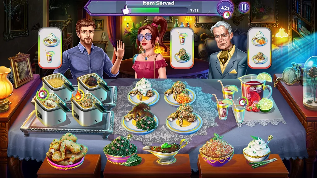 In *Cook Off: Mysteries*, you'll combine cooking challenges with detective work as you tackle mysterious cases. Renovate mansions to unlock new areas, discover hidden clues, and serve up exquisite meals to the elite. Put your strategy to the test by managing time, cooking up delicious dishes, and solving the case of the missing housekeeper. Each level brings new surprises, and your progress unlocks exciting upgrades, recipes, and tools to help you serve your clients faster and smarter!
