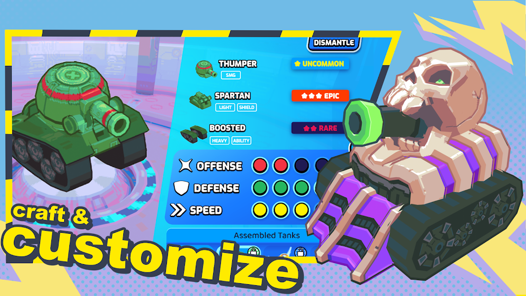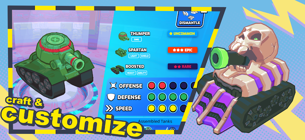 Select your favorite dog avatar and choose your tank to join the battle. Customize your tank with a variety of parts, including chassis, turret, and body. Craft new parts to level up and strengthen your tanks, making each fight more strategic and rewarding. Get ready for action-packed tank battles in this unique open-world anime gacha experience!
